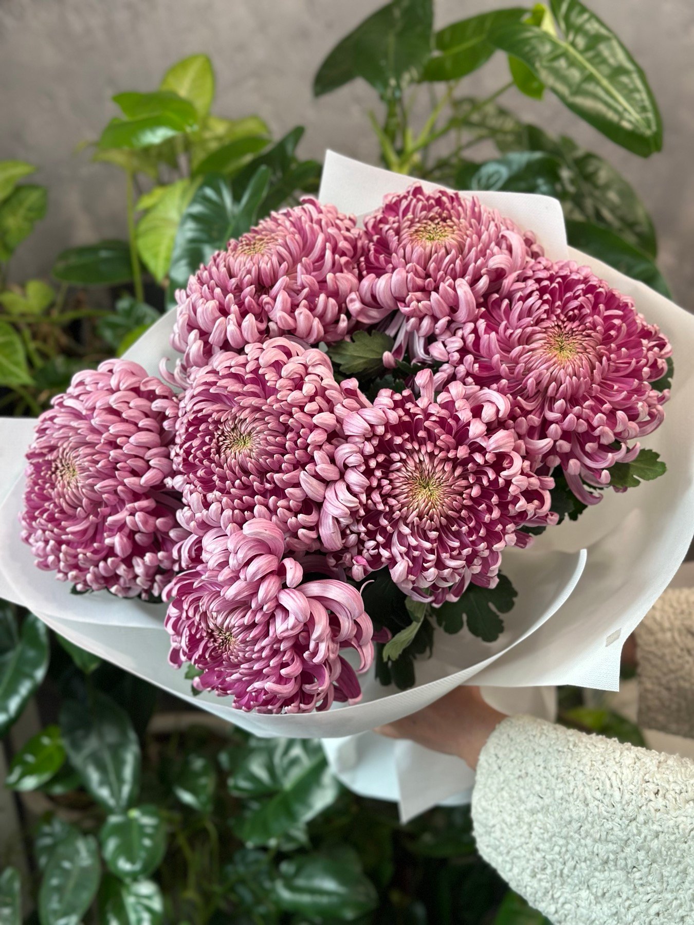 “Big Size”Букет з 7 рожевих хризантем “Viena”