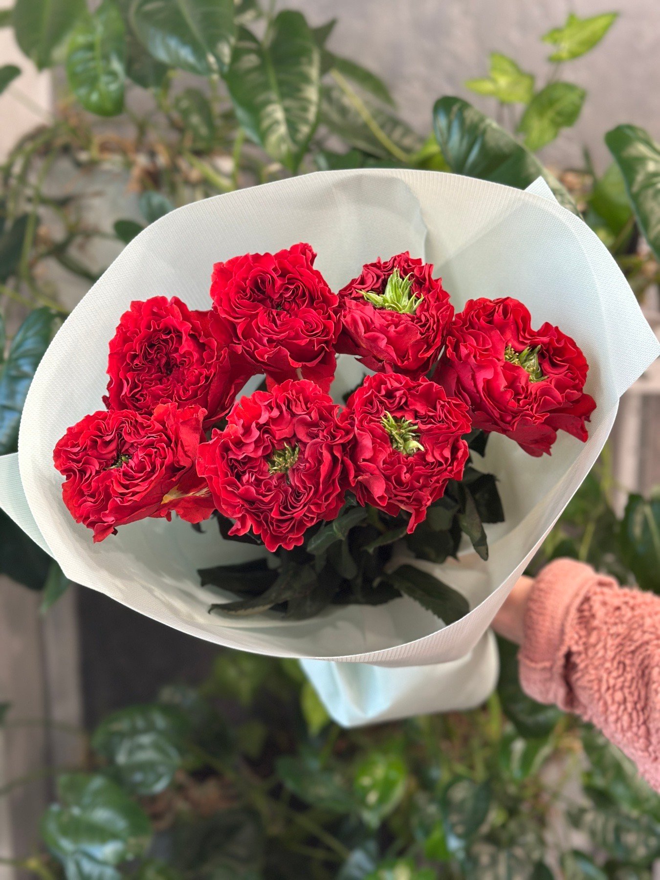 Букет 7 піоноподібних троянд “Red Monster” Еквадор 60 см