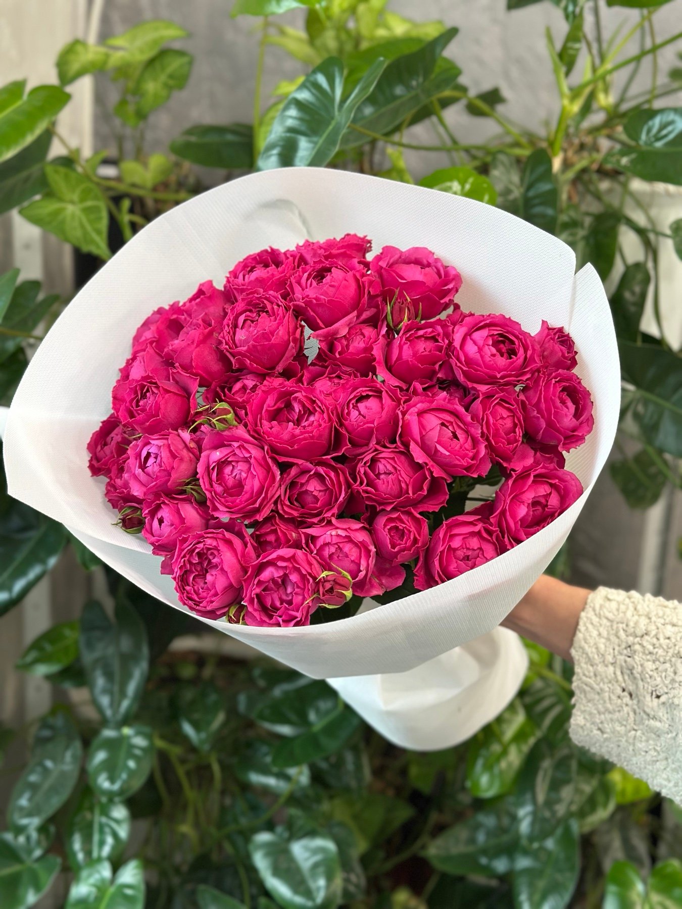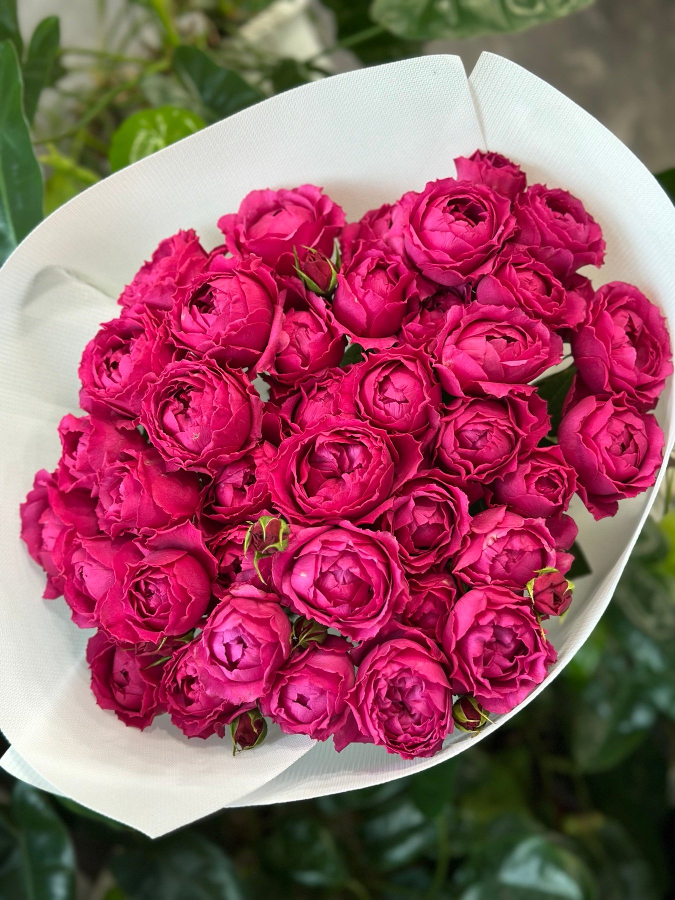 Букет з 11 гілок кущових троянд “Rich Bubbles”
