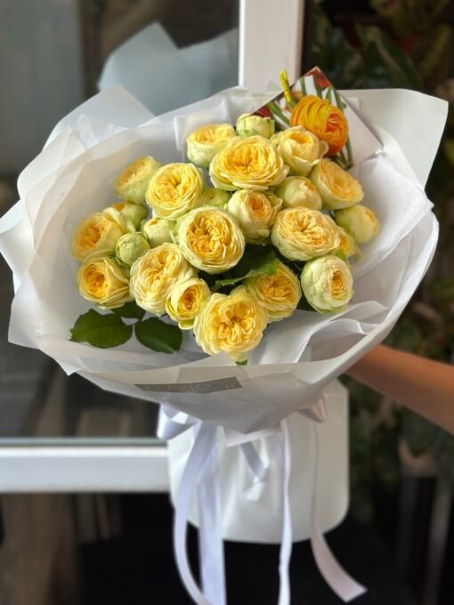 Букет з 15 піоноподібних троянд “Piony Bubbles” 40 см