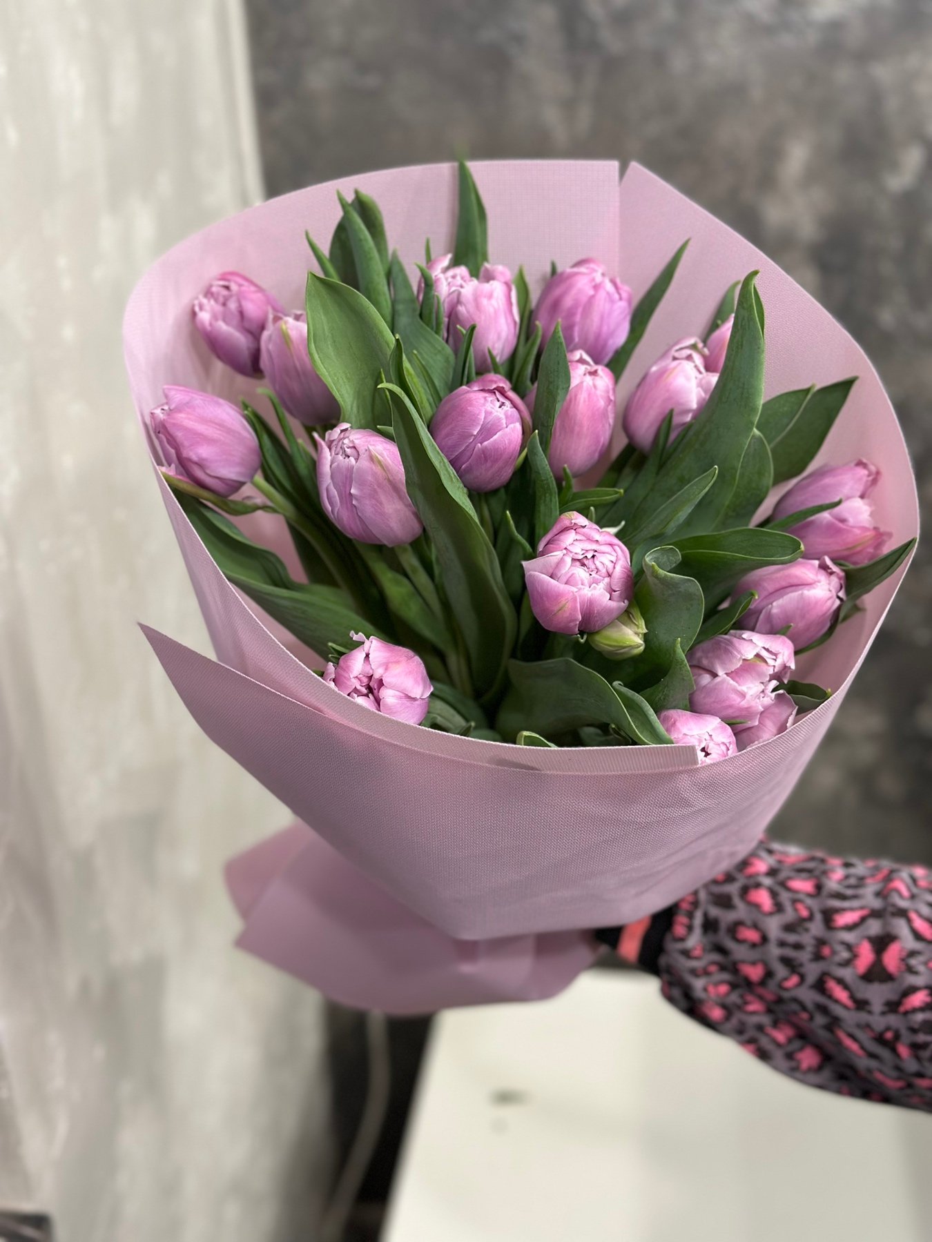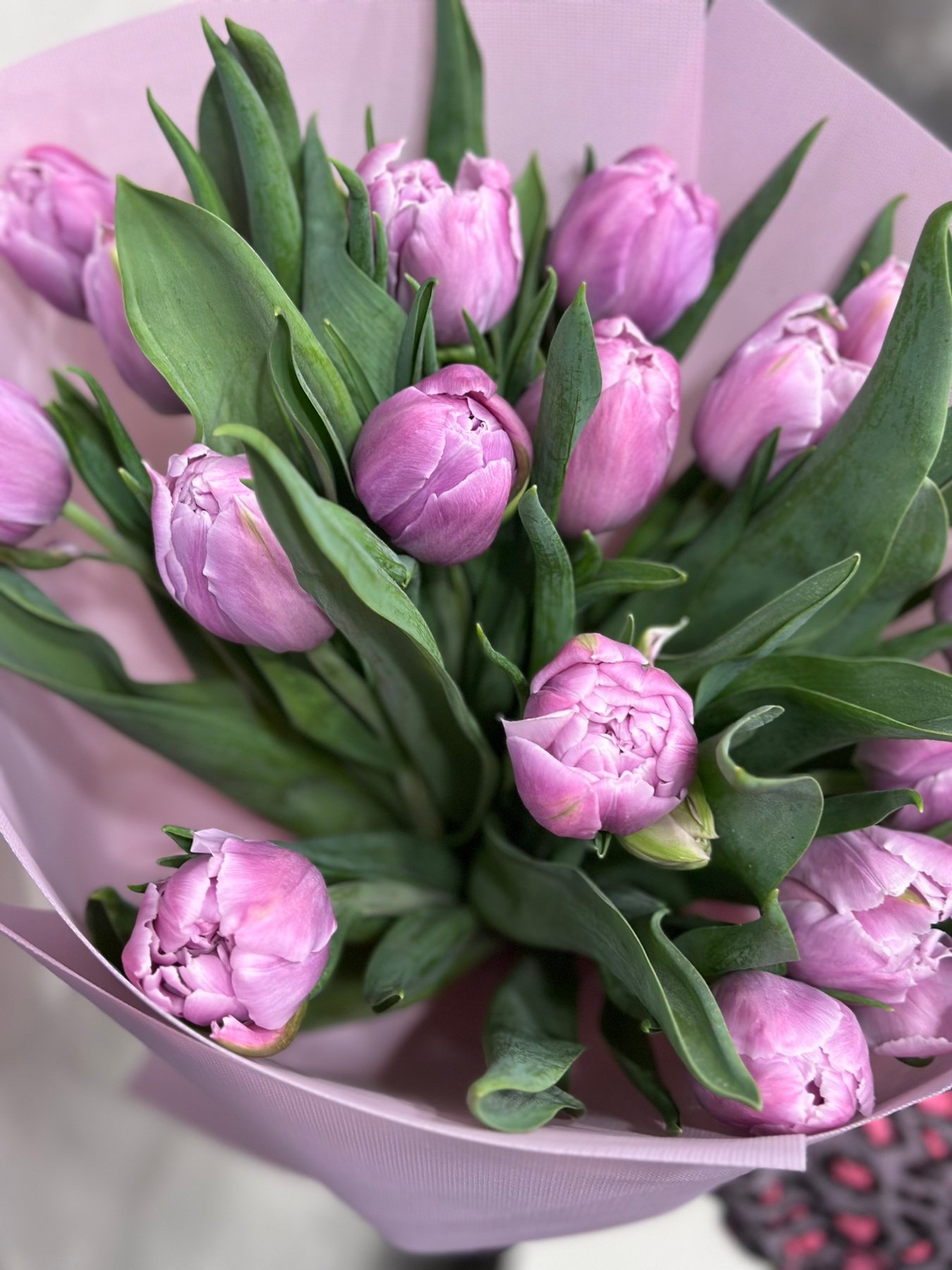 Букет з 15 піоноподібних тюльпанів “Katinka”