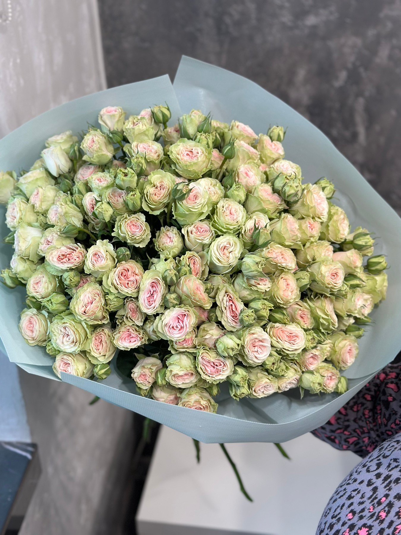 Букет з 25 гілок кущових троянд “Fibonacci Yantra”