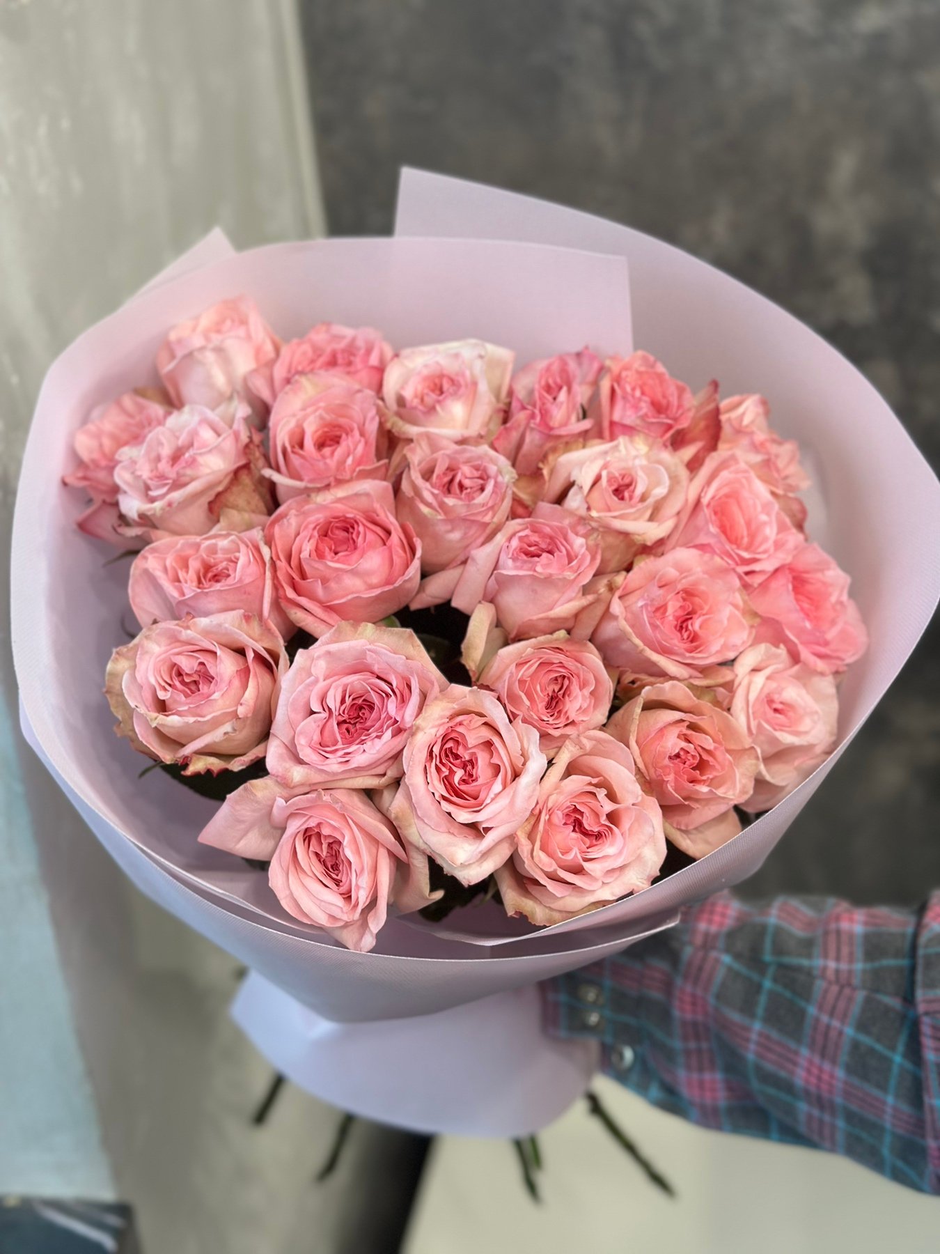 Букет з 25 піоноподібних троянд “Pinky Winky”
