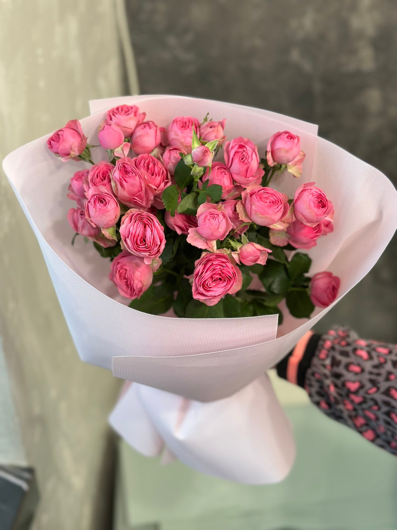 Букет з 5 гілок кущових троянд “Giselle”