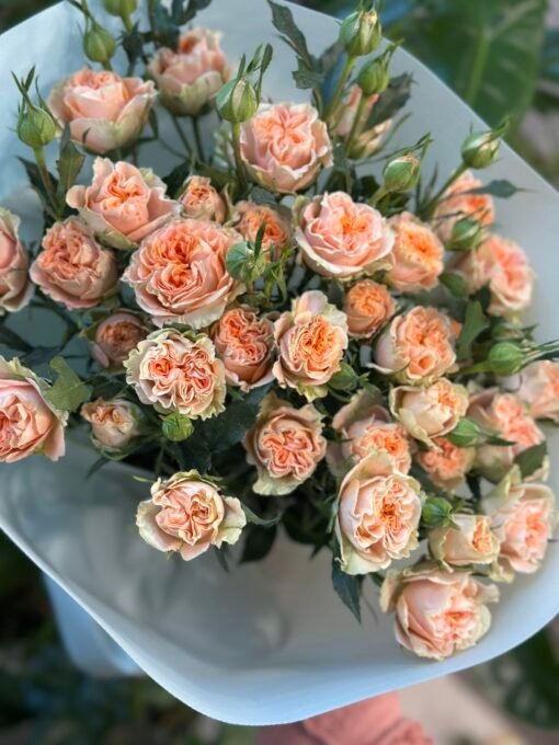 Букет з 7 гілок піоноподібних кущових троянд «Aureus»