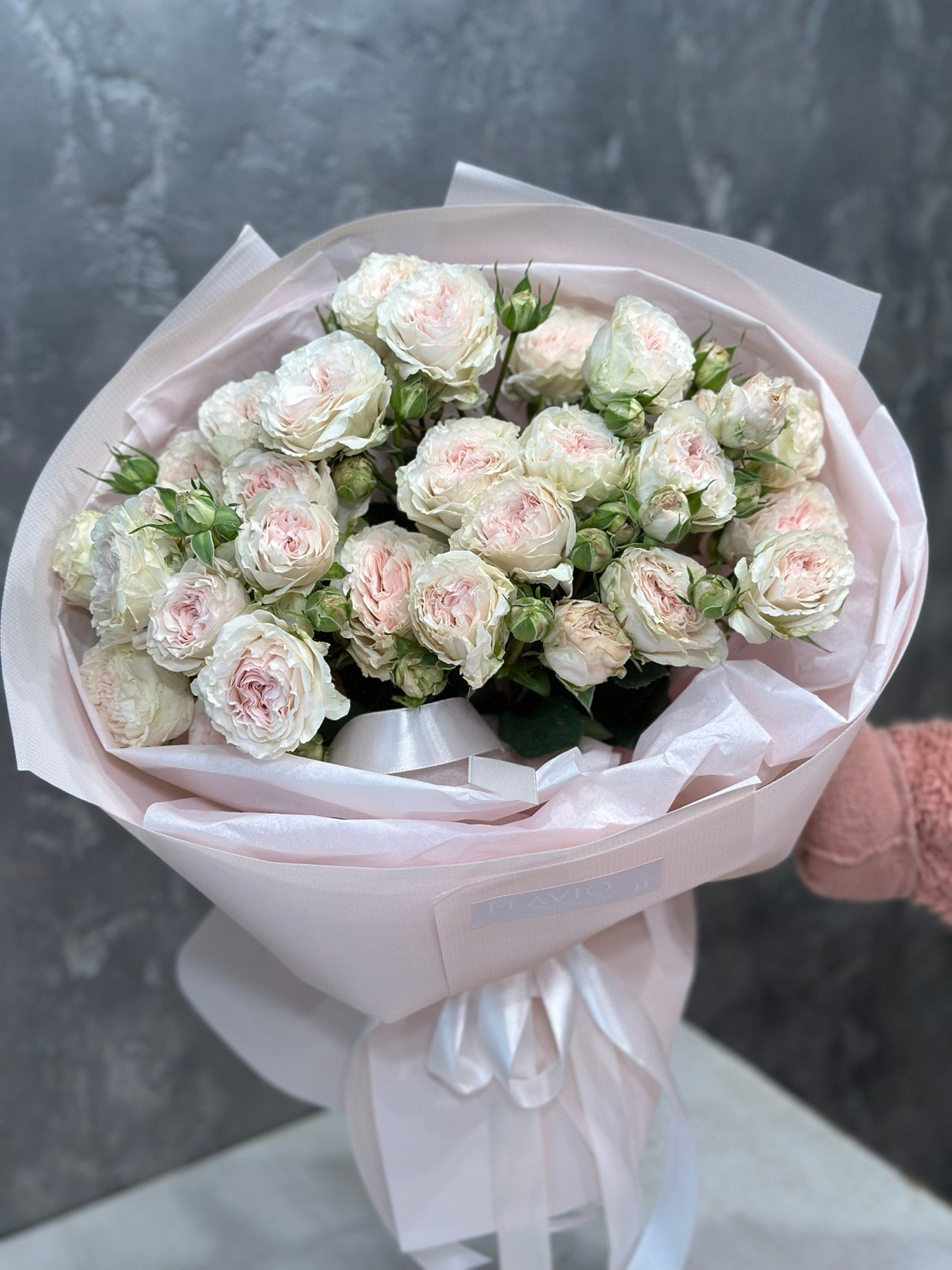 Букет з 9 гілок піоноподібних кущових троянд «Be True»