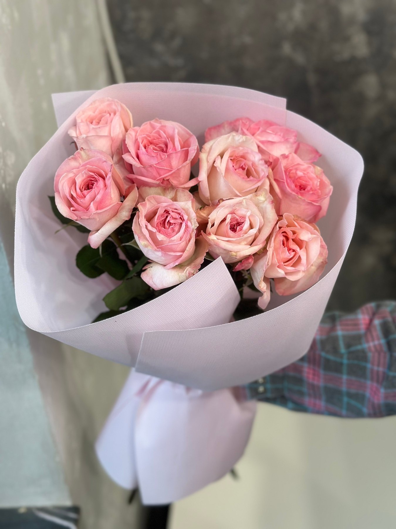 Букет з 9 піоноподібних троянд “Pinky Winky”