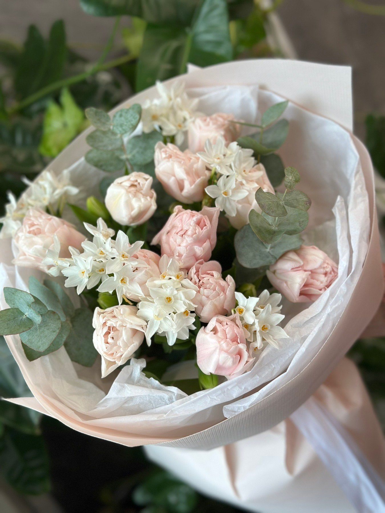 Букет з піоноподібними тюльпанами та нарцисами #112