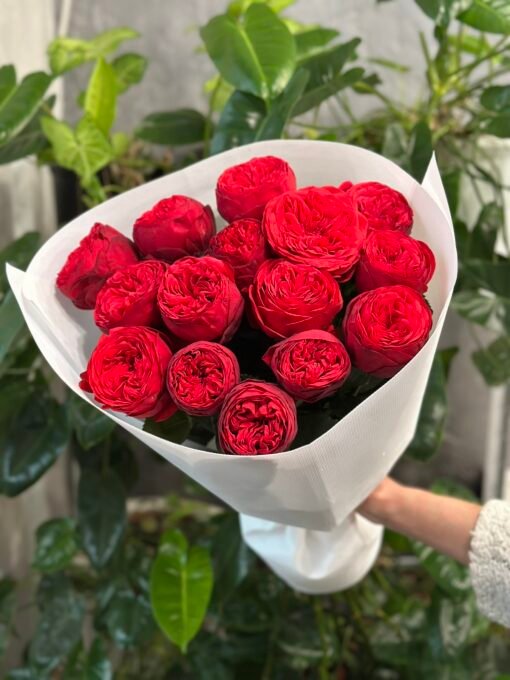 “Exclusive” Букет з 15 піоноподібних троянд “Red Piano”
