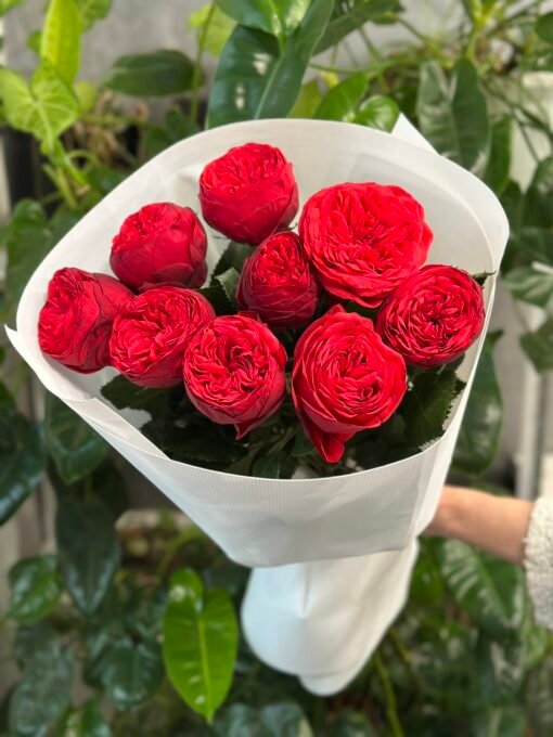 “Exclusive” Букет з 7 піоноподібних троянд “Red Piano”