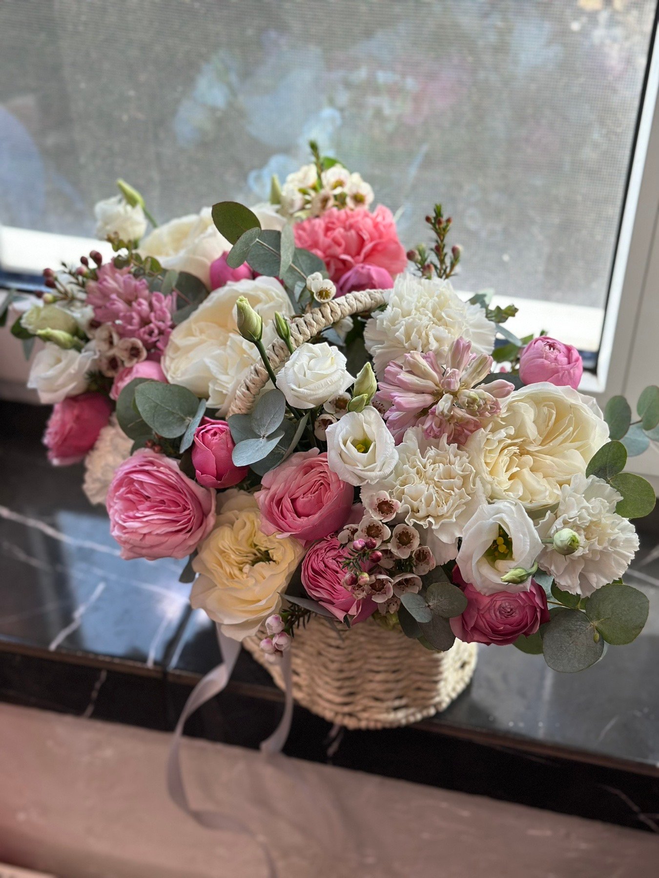 | Увага: | Всі квіткові композиції унікальні та неповторні. Щоразу ми робимо їх у тому ж розмірі, дотримуючись кольорової гами, з поправкою на асортимент квітів у наявності. Обіцяємо, що композиція залишиться такою ж стильною та оригінальною. |