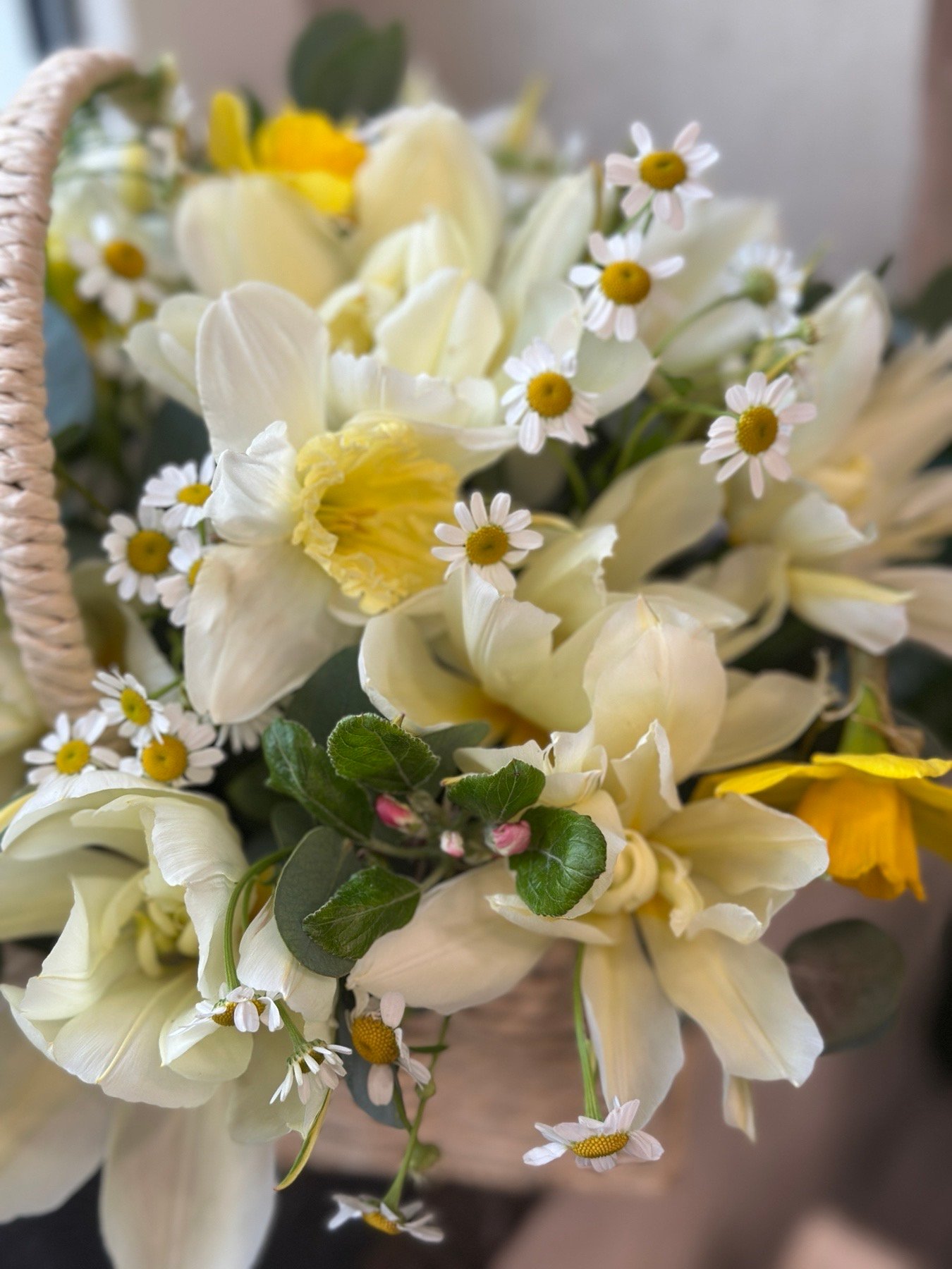 | Увага: | Всі квіткові композиції унікальні та неповторні. Щоразу ми робимо їх у тому ж розмірі, дотримуючись кольорової гами, з поправкою на асортимент квітів у наявності. Обіцяємо, що композиція залишиться такою ж стильною та оригінальною. |