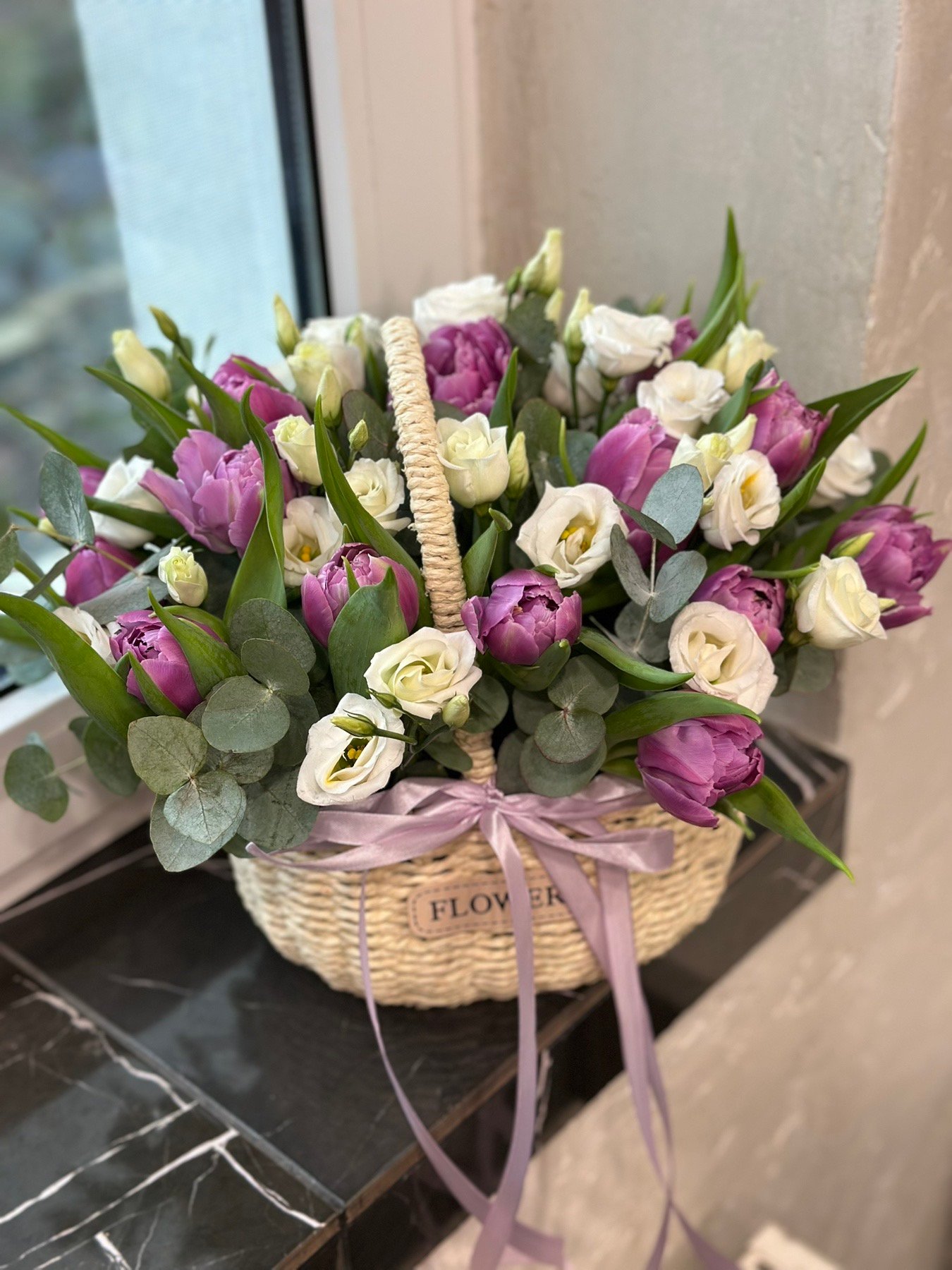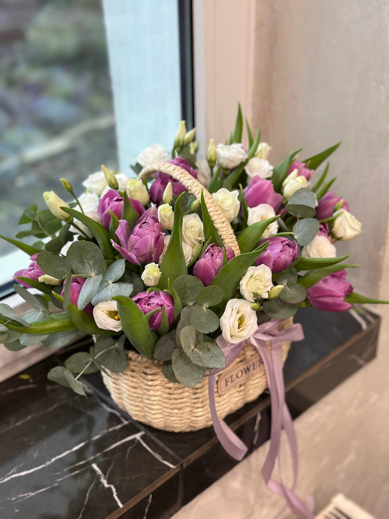 | Увага: | Всі квіткові композиції унікальні та неповторні. Щоразу ми робимо їх у тому ж розмірі, дотримуючись кольорової гами, з поправкою на асортимент квітів у наявності. Обіцяємо, що композиція залишиться такою ж стильною та оригінальною. |